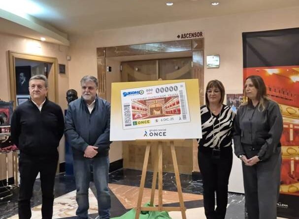 Villena, 18 de noviembre.- El Teatro Chapí celebra su centenario con un cupón conmemorativo de la ONCE en una edición de cinco millones y medio de cupones, que difundirán el aniversario de este espacio escénico de Villena, para el sorteo del 6 de diciembre. La presentación oficial corrió a cargo de Fulgencio José Cerdán, alcalde de Villena; Estela Medina, directora de la ONCE en Alicante; Paco Flor, director del Teatro Chapí; y María Server, concejala de Cultura, han presentado este cupón. El Teatro Chapí es uno de los más activos de la provincia, que registró más de 22.000 espectadores durante 2024 en las 55 representaciones programadas el pasado año.
